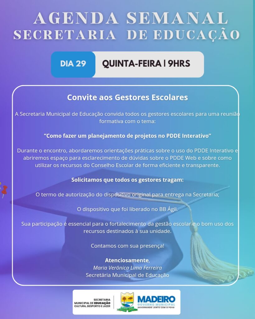 Hoje Quinta-Feira 29 de Maio de 2025 realizamos uma importante reunião 📚 com os gestores escolares, assessoria pedagógica, a Secretária Maria Verônica 👩💼, a Vice-Secretária Vanda Liarte 👩🏫 e a equipe técnica 👥. O foco do encontro foi o planejamento de ações para o uso dos recursos nas escolas 🏫, visando fortalecer ainda mais a qualidade da educação em nossa rede 📖✨