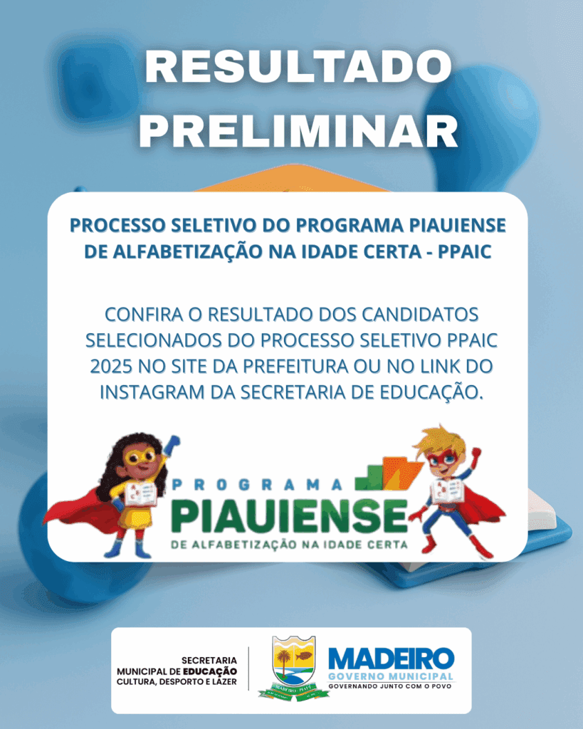 Acompanhe o resultado preliminar dos canditados do processo seletivo do Programa Piauiense de Alfabetização na Idade Certa