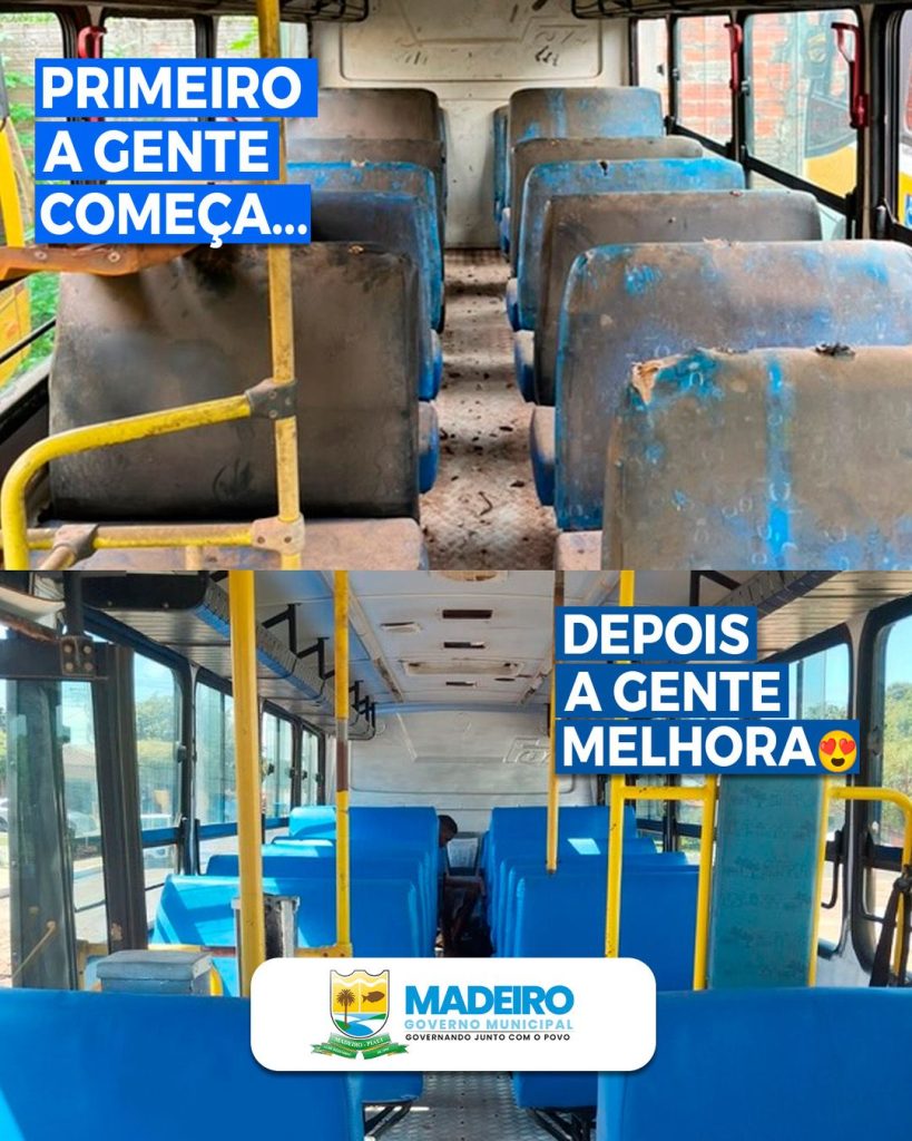 Transformação que faz a diferença!Primeiro a gente começa… depois a gente melhora!Nosso compromisso é com a qualidade e o bem-estar da população. Olha só a revitalização do transporte público em Madeiro! Mais conforto, mais segurança e mais dignidade para todos!