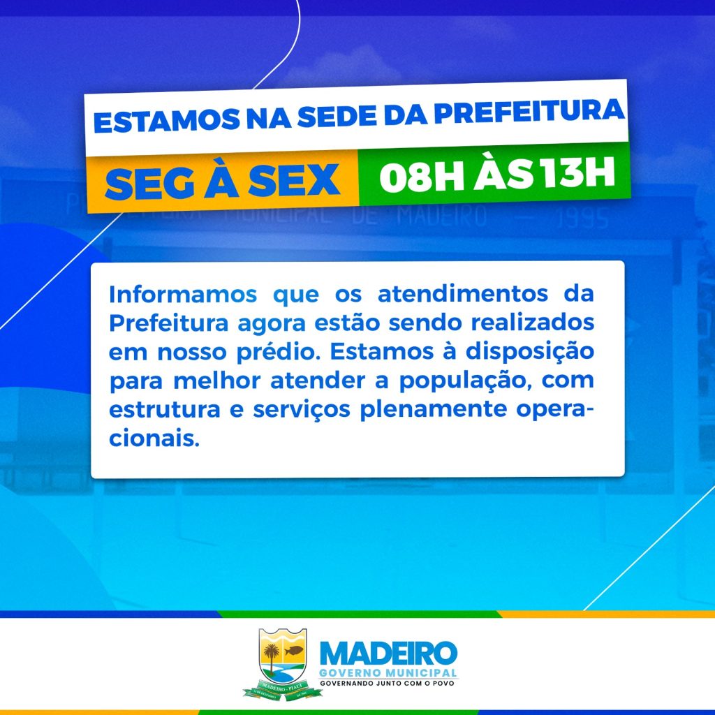 Informamos que os atendimentos da Prefeitura agora estão sendo realizados em nossa SEDE. Estamos à disposição para melhor atender a população, com estrutura e serviços plenamente operacionais. Seja bem-vindo!
